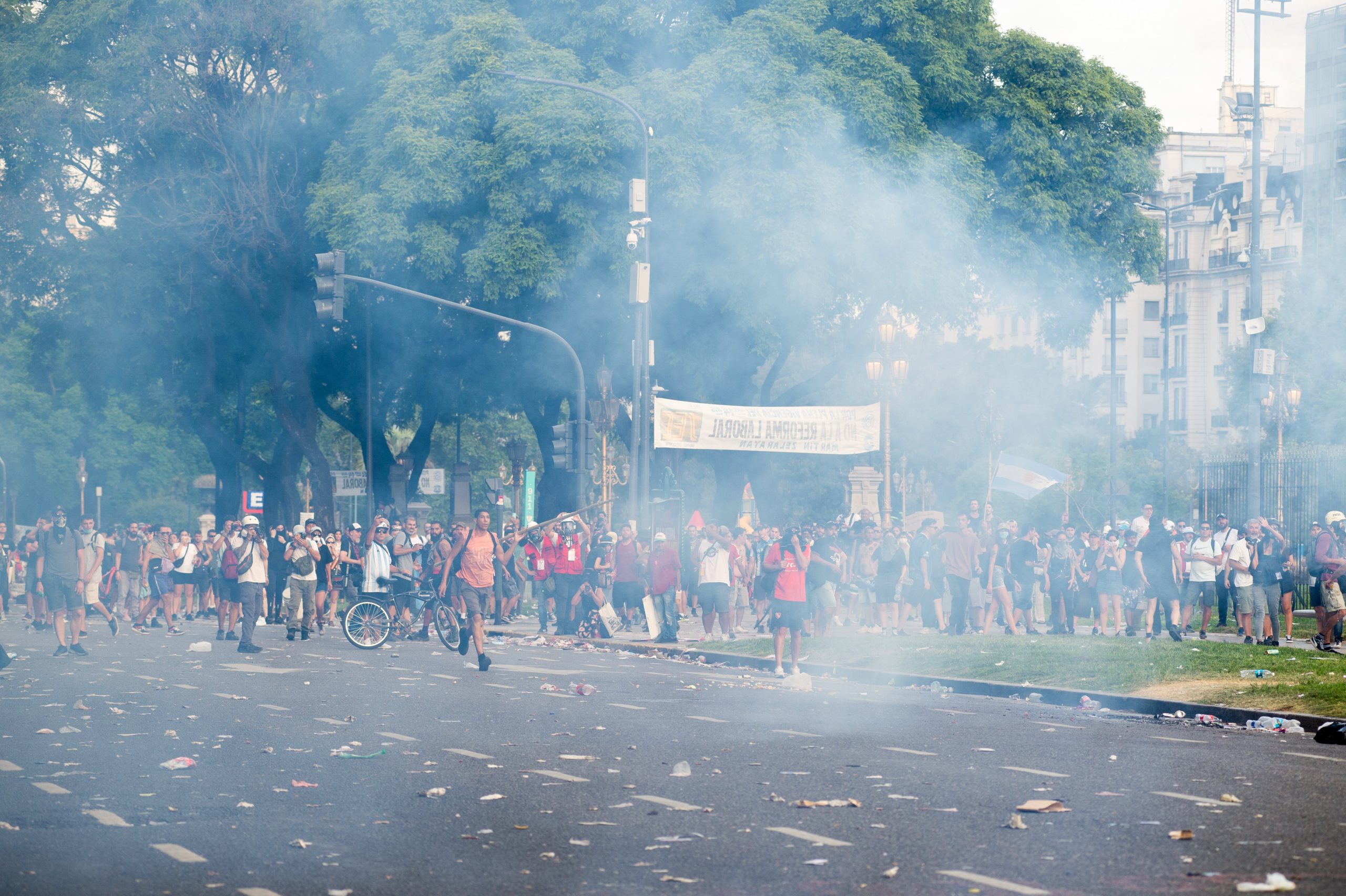 “Es la izquierda, siempre. Pero aquí ni se siente”, sostuvo a Infobae un legislador libertario desde el recinto donde desde las 11 se da tratamiento a uno de los proyectos más importantes del temario que el Ejecutivo envió para las sesiones extraordinarias. En las calles aledañas, la Policía de la Ciudad y los efectivos de las fuerzas involucradas respondían con gases y balas de goma a la avanzada de los manifestantes contra el cordón de seguridad que resguardaba los principales accesos del Congreso.