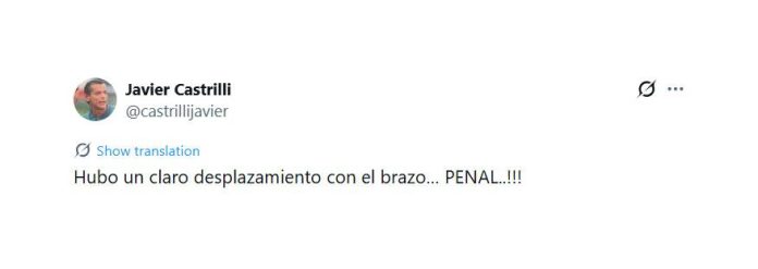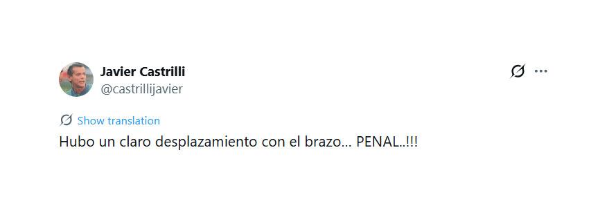 Quien coincidió con el ex Fiorentina y con el planteo de todo River fue el árbitro Javier Castrilli. “Hubo un claro desplazamiento con el brazo… PENAL..!!!“, escribió en su cuenta de X (antes Twitter).