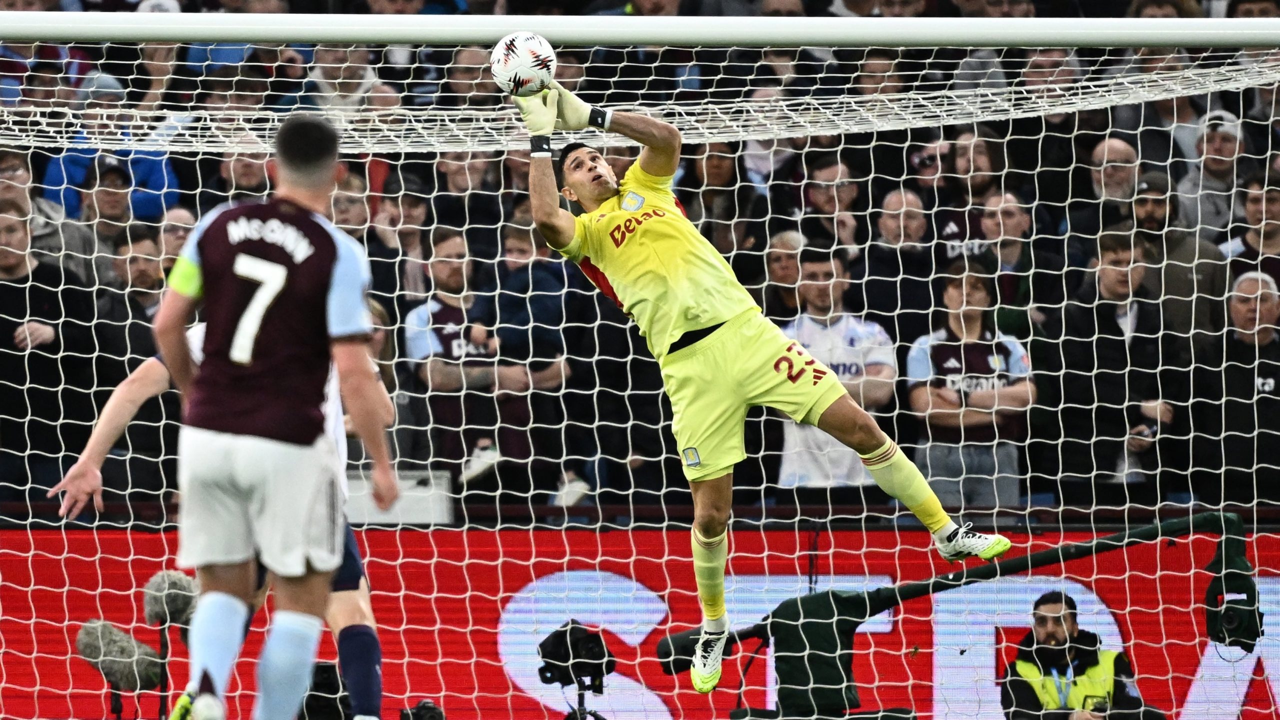 Luego de lo que había sido la victoria 3-1 en la ida desarrollada en Italia, el Dibu apareció en dos momentos clave del encuentro en Birmingham. En primer lugar, el campeón del mundo con la selección argentina contuvo un disparo a distancia de Federico Bernardeschi en dos tiempos a los 11 minutos con el marcador igualado. Esa intervención cobró otro valor cuando llegó el 1-0 de Ollie Watkins a los 15′, tras una buena conducción de Buendía en el origen de la jugada.